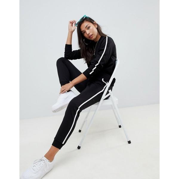 エイソス レディース ジョガーパンツ セットアップ ASOS DESIGN tracksuit cute sweat / basic jogger with tie with contrast binding ブラック