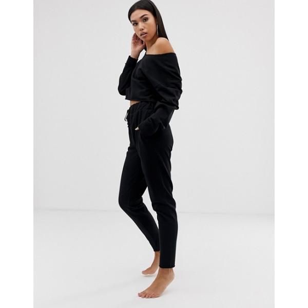 エイソス レディース ジョガーパンツ スウェットパンツ セットアップ ASOS DESIGN Lounge mix & match raw hem crop sweat and jogger ブラック