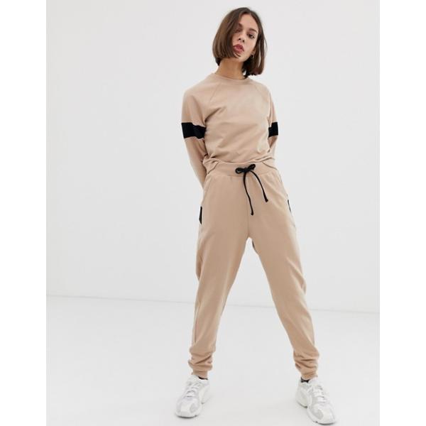 エイソス レディース ジョガーパンツ スウェットパンツ セットアップ ASOS DESIGN tracksuit sweat with panels / jogger with tie 大きいサイズ