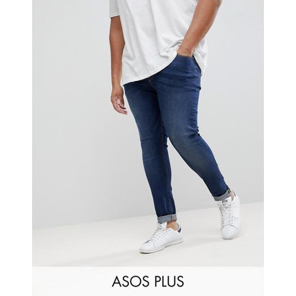 エイソス スキニー ジーンズ メンズ ブルー ASOS PLUS Extreme Super Skinny Jeans In Dark Wash 大きいサイズ
